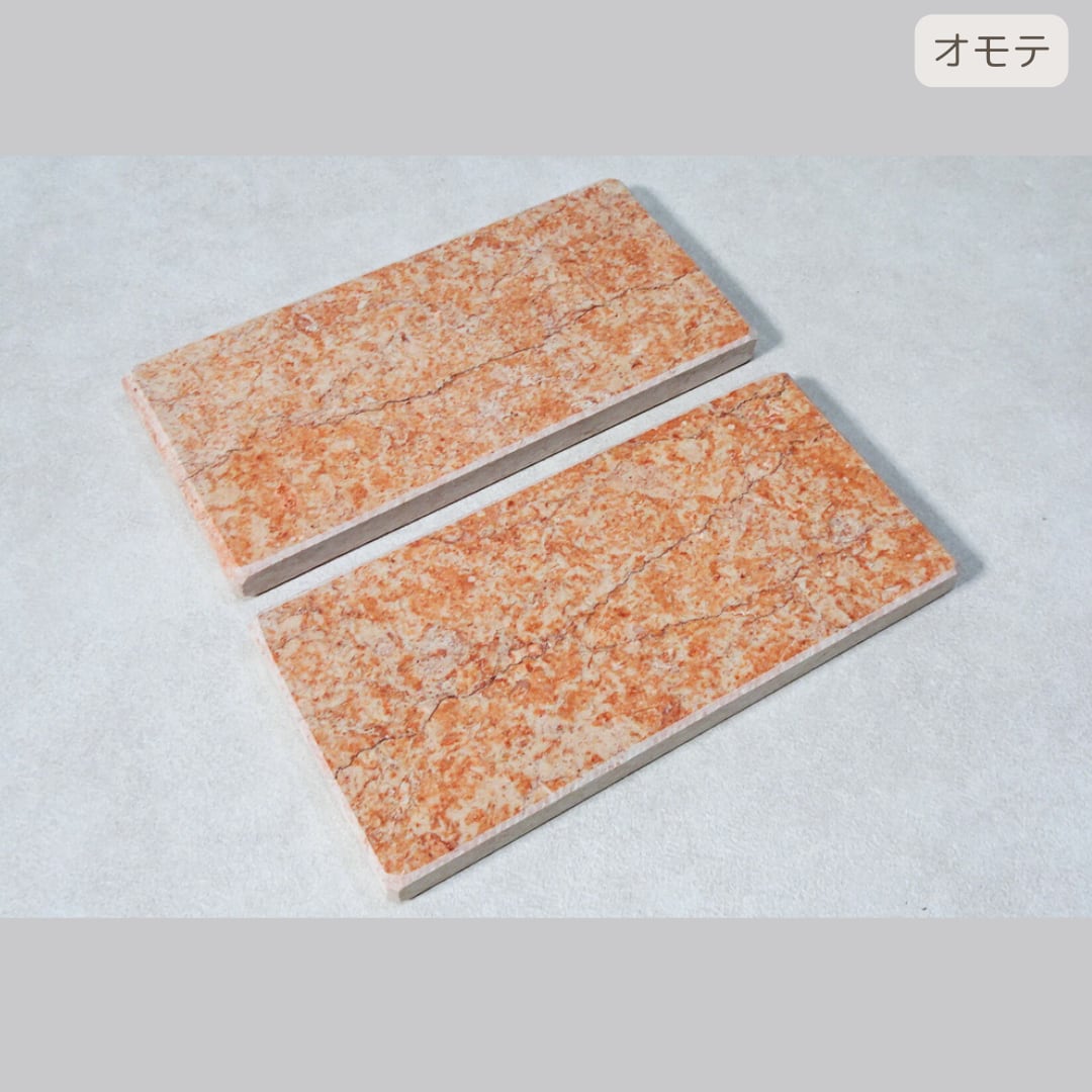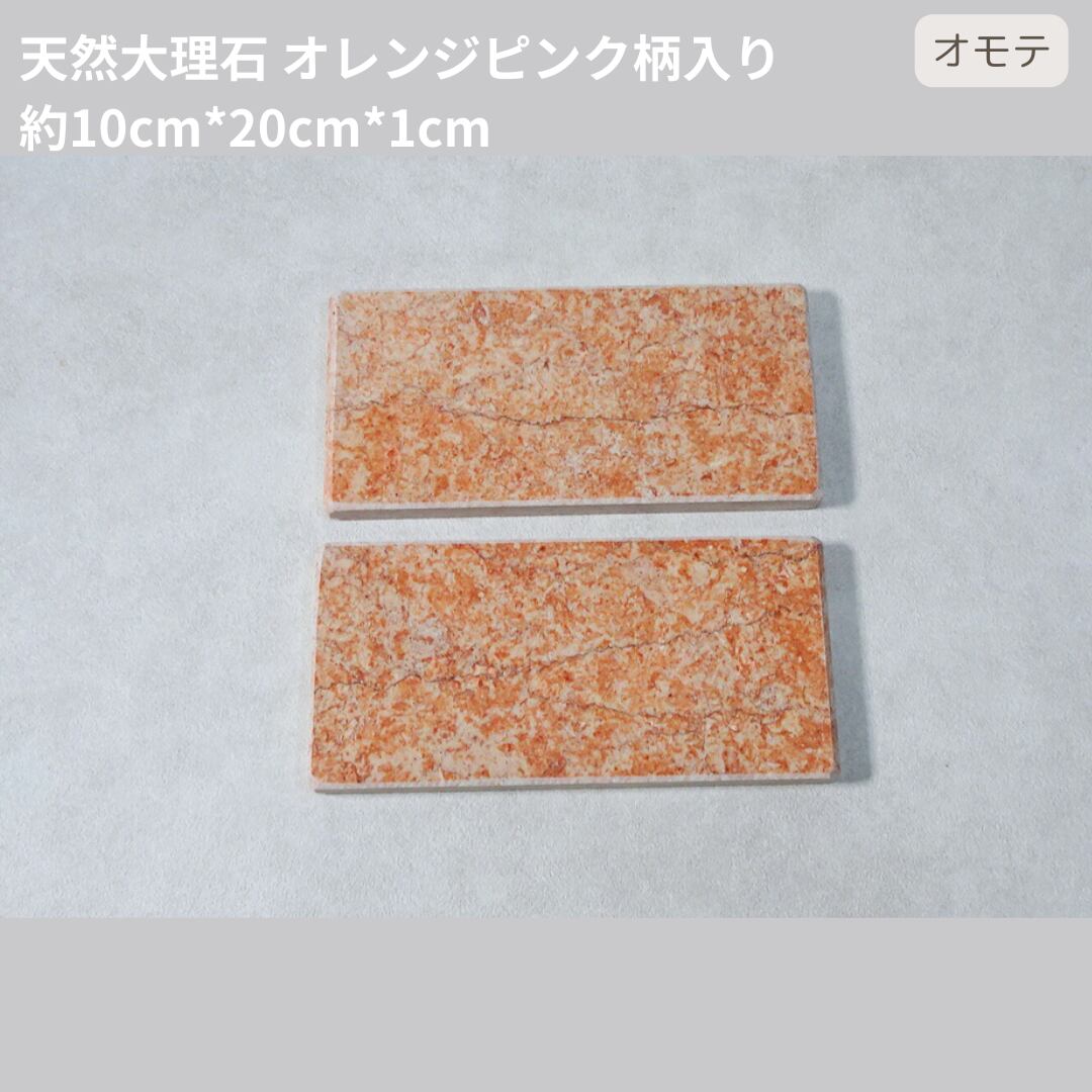 [ランダム]天然大理石プレート オレンジピンク柄入り 10cm*20cm[面取り加工なし][裏面なし]