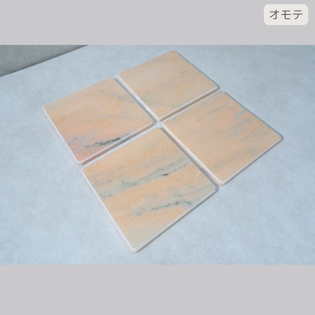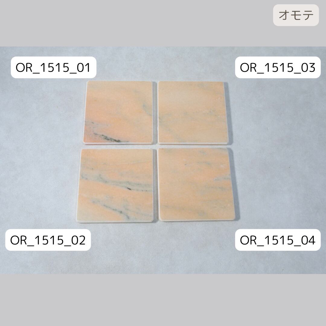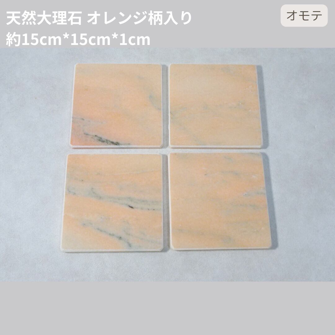 天然大理石プレート オレンジ柄入り 15cm*15cm[面取り加工なし][裏面なし]