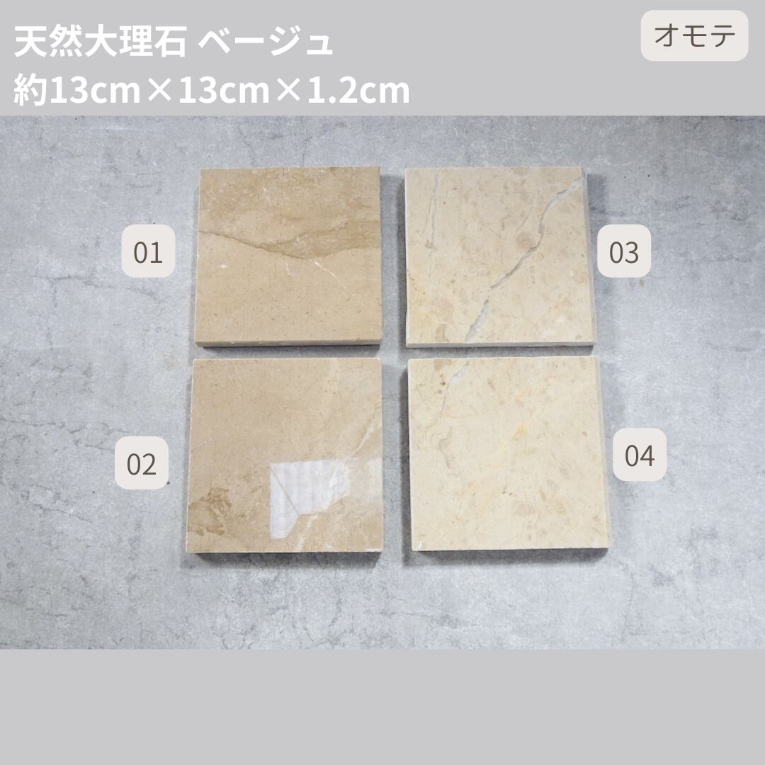 天然大理石プレート ベージュ柄入り 13cm*13cm[面取り加工なし][裏面なし]